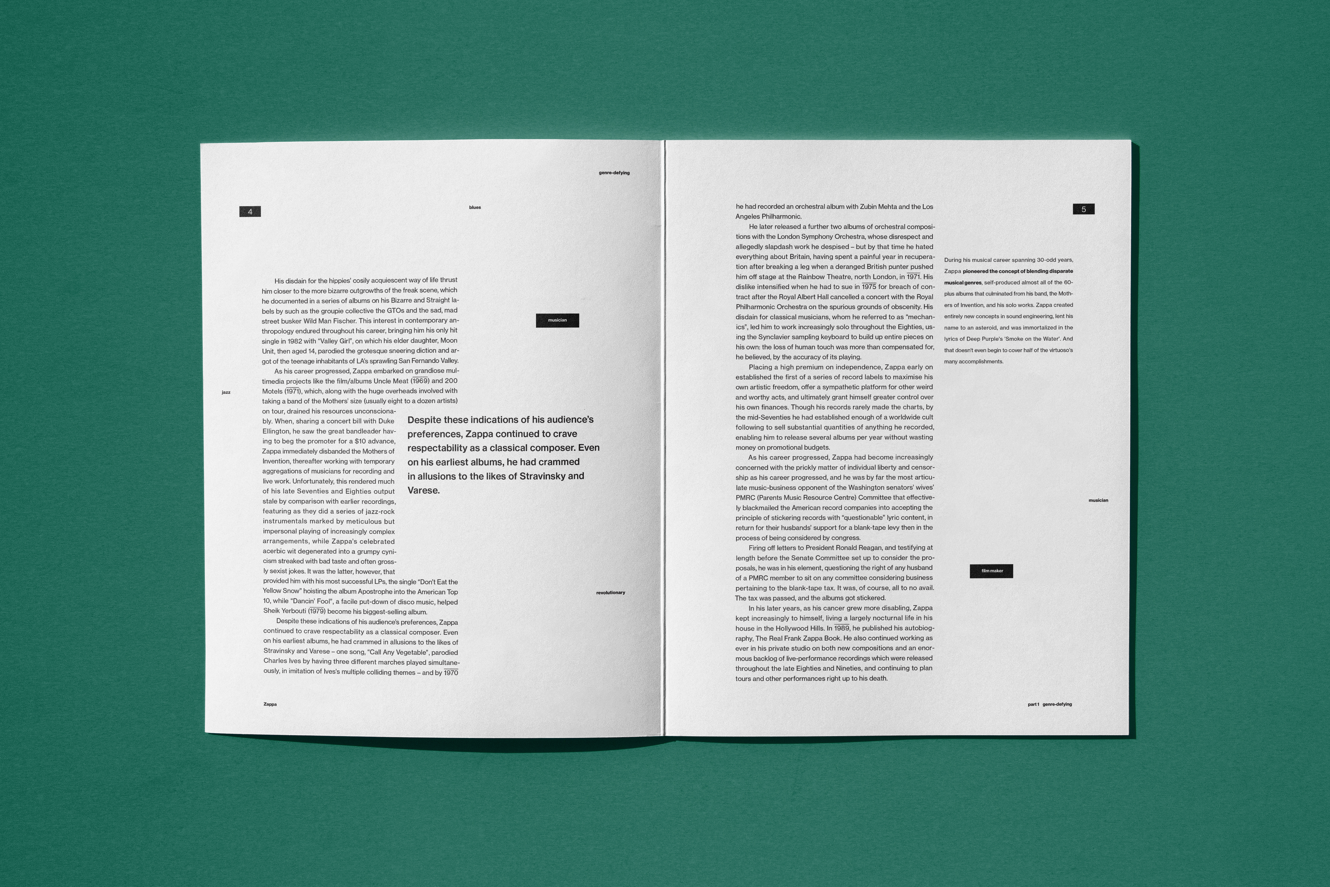 Frank Zappa was a legendary artist who cannot be described as one thing. He was a guitarist, producer, activist, politician, etc. He was also one of few musicians who went beyond all kinds of genres and created more than 60 albums in his entire life. It’s hard to define him or his music in a single word because he was cross-disciplinary.