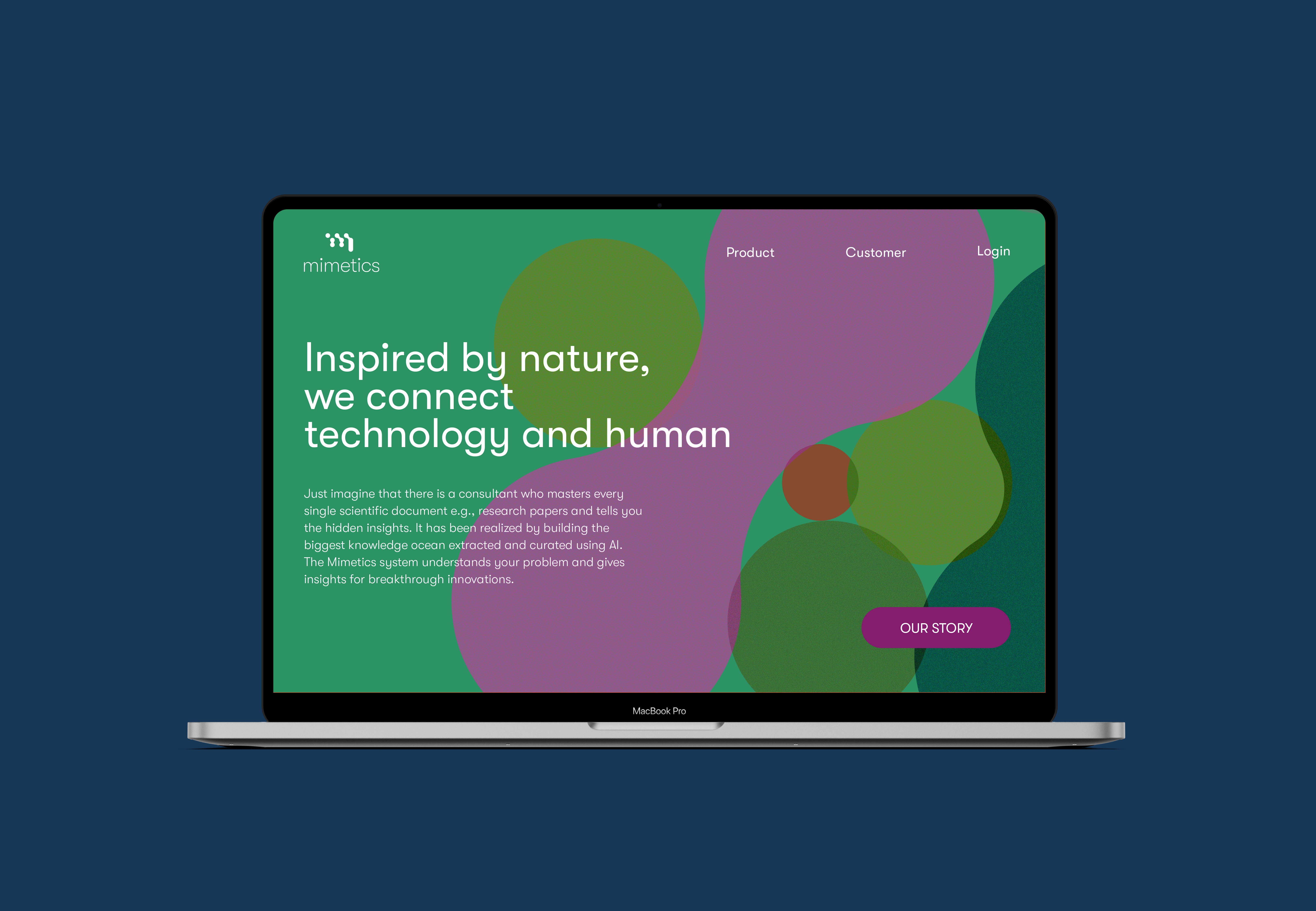Redesigned the brand identity for Mimetics, a biotech start-up specializing in biomimetics (nature-inspired technology). Their core focus is developing innovative solutions by mimicking nature, with their most advanced technology inspired by octopus tentacles. Currently, their technology is being applied in skin patches, where it employs octopus suction cup technology boasting high absorption rates. Their vision is to expand beyond a skincare-focused business and see their biomimetic technology utilized across a wide range of industries.